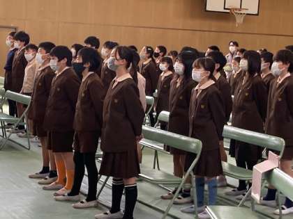 卒業証書授与の練習の後、呼びかけの練習をしました。