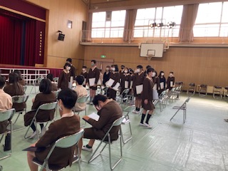 最後まで、かなりの時間、子ども達はよく頑張りました。退場の練習も行いました。