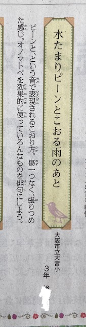 3年生のNさんの俳句が、朝日小学生新聞に掲載されました。これで2回目です。Nさんは、自主学習でもたくさん俳句を作っています。