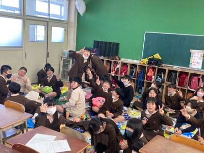 みんなで、映画を観たりお話ししながらお菓子を食べました。卒業まで残り2日です。
