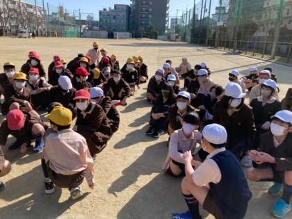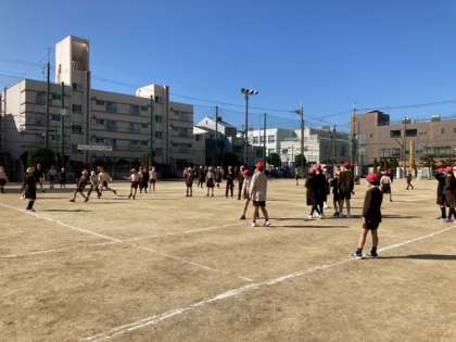 思い出作りに学年で交流をしました。鬼ごっことドッジボールとだるまさんがころんだをしました。