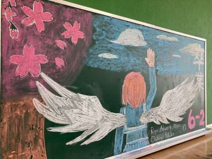 朝早くこっそり登校して子ども達が完成させた黒板アート