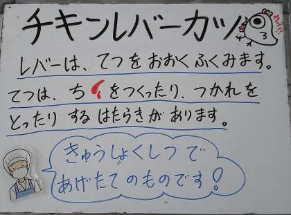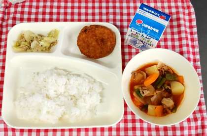 今日は、チキンレバーカツ、ケチャップ煮、ツナとキャベツのバジルソテー、ご飯、牛乳でした。
