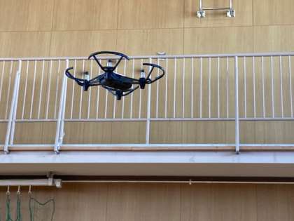 大阪工業大学のY准教授に来校していただき、ドローンを飛ばしてみました。