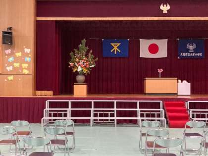 式場や教室の準備が整いました。明日は、お子様の学校生活のスタートとなる日。素晴らしいものとなりますよう、教職員一同、心を込めてお祝いを致します!