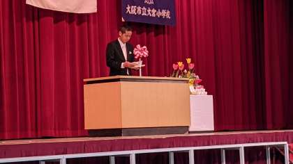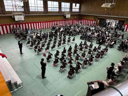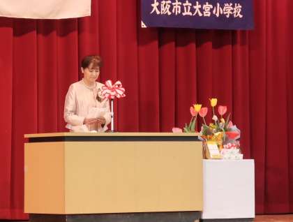 校長先生の式辞に続いてPTA会長からの祝辞をいただきました。しっかり話を聞いていました。