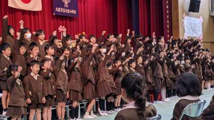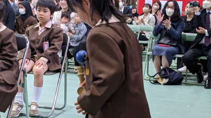 2年生が「お迎えの言葉」を披露しました。学校のこと、勉強のこと、1年間でできたけん玉や縄跳びなども披露しました。どの子もすごく頑張っていて、1年間の成長を感じました!