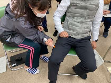 昨日午後から校内研修会を開きました。11日から始まる給食等でのアレルギー対応について、全教職員で共通理解しました。養護教諭、栄養教諭が中心となり、説明を行いました。エピペンの使い方も実習しました。毎年、本校では、給食が始まる前に、この研修を実施しています。
