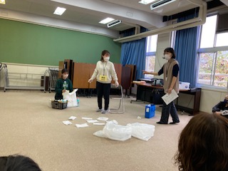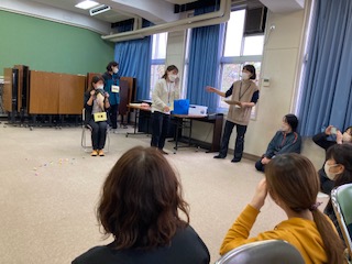 続いて、児童が食べたものを戻してしまった時の対応をロールプレイを通して研修しました。