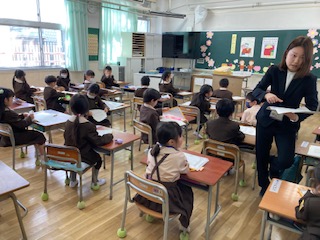 たくさんの手紙などがあり、たたんで連絡袋に入れたり、お道具箱の中を点検したりしました。トイレの場所も覚えて使っています。