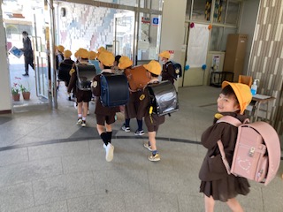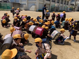 運動場に、帰るコース別に並び、それぞれの担当の先生達に引率されて下校しました。