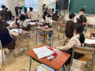 教科書では、「学級でペットを飼うなら」というテーマで話し合う例文が載っています。自分達でも、もしこうだったらとテーマを決めて、ペアやグループで話し合いました。自分の考えに根拠、理由をつけて話しています。賛成や反対などの意見も出しています。