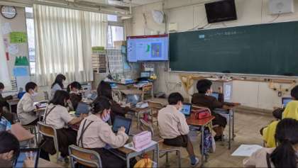 社会科「都道府県について調べよう」に取り組んでいました。タブレットを使って、自分で調べる都道府県の特徴をまとめていました。