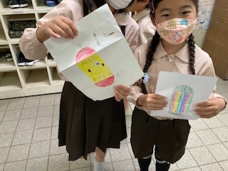 1年生へのメッセージが書いてあります。紙を広げると、やさしい言葉も飛び出します!!うれしいですね。
