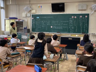 学級目標について考えました。みんなから出た案を見ながら、どこをどのように変えたら良いか考え、話し合いました。