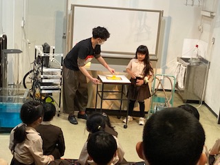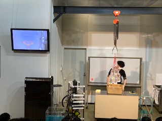 最後は真空の筒に穴を開けるとものすごい勢いでボールが飛び出しました。これも空気の力を利用した実験でした。