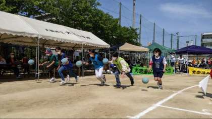 各町会の代表者が、ドリブル走や二人三脚をしながら、ゴールを目指します!