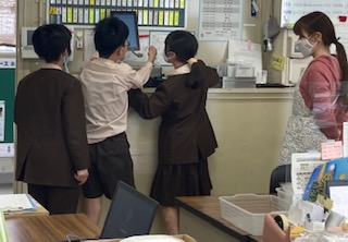 大宮小学校では、今日から始めます。図書委員会児童が、昼の放送で呼びかけをしました、