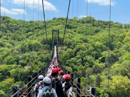 山頂を目指して階段を登り、吊り橋に到着しました。階段は疲れましたがこの景色を見ると疲れが吹っ飛びます。