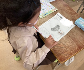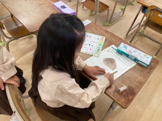 あさがおの種を観察しました。絵と文章で気づいたことを表現しました。