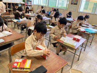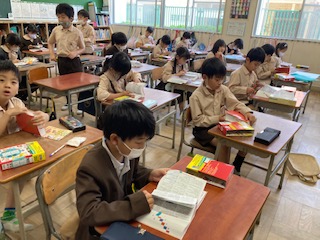 国語辞典で速く言葉をひく競争をしました。だんだんひき方の方がわかってきました。