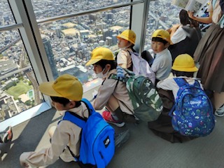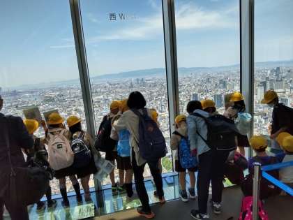 あべのハルカスに行きました。16階から60階まで何秒で着くか数えました。天気が良く、遠くまで見えました。