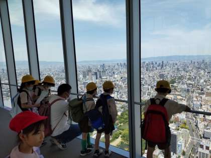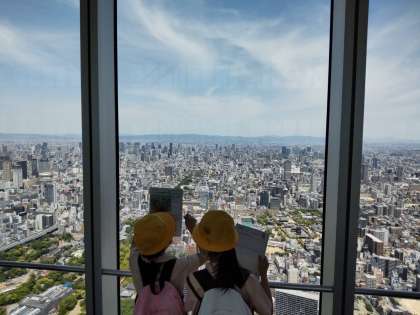 あべのハルカスのリーフレットを見ながら、目の前に広がる景色をチェックしていきました。