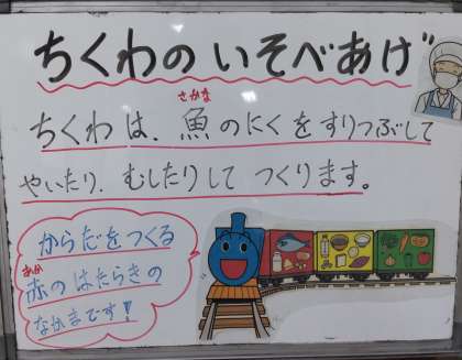今日は、ちくわの磯辺揚げ、あつあげとさといものみそ煮、あっさりキャベツ、ご飯、牛乳でした。ちくわの磯辺揚げは大好評でした。