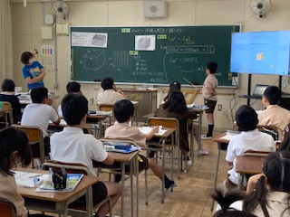 容積の求め方や単位の変換などについて考えました。計算だけではなく、実際に1立方センチメートルの立体を並べて、1リットルの容器にいくつ入るかなどを調べ確かめてみました。