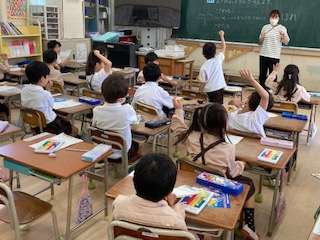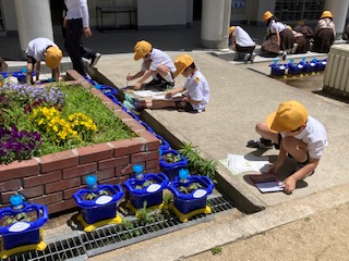 アサガオの観察をしました。よく見てカードに書きました。そして、気づいたことを発表しました。友達の発表を聞いて、新たに気づいたこともありました。