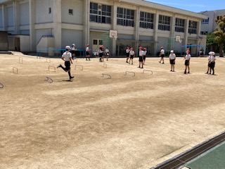 ミニハードルを使って記録を取りました。