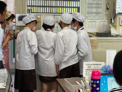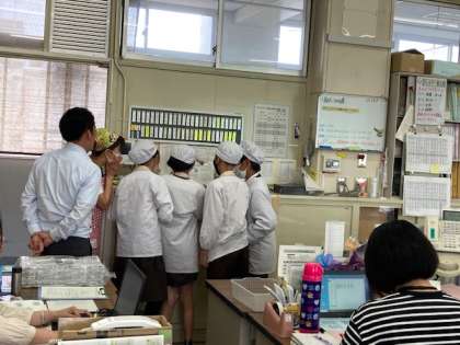 昨日の給食には、抹茶ういろうが出ました。給食委員会の6年児童が、新茶の話から、「茶摘み」を歌いました。心配そうに見守る教頭先生と栄養教諭のF先生。一緒に歌って応援していました。