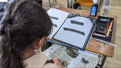 学習のルールの確認をしっかりと行い、毛筆に挑戦です。