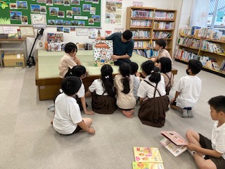 先生の読み聞かせを楽しむ子、自由に一人で読書を楽しむ子など、様々です。
