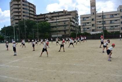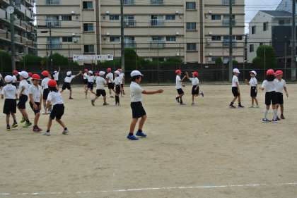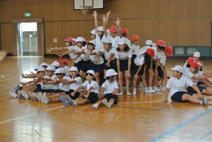 広い運動場をいっぱいに使って大きく動き回りながらする団体演技は迫力があります。