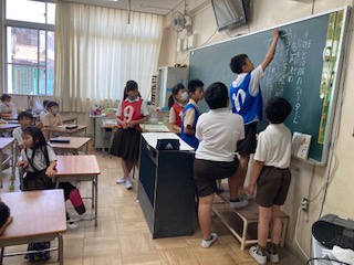 1時間目、大宮子どもまつりについて、たてわり班で話し合いました。ゲームの内容、宣伝のポスター作りなど、役割分担も決め、本番に向けて進めていきます。