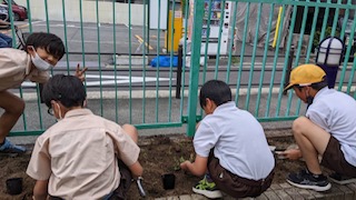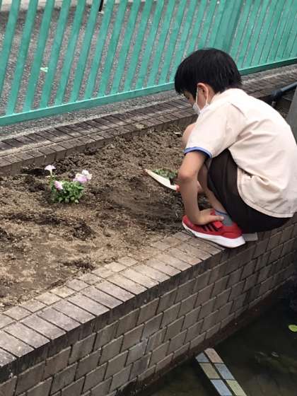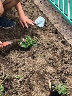パンジー、ビオラが終わりました。雑草をぬき、土を耕したのは、5.6年生のボランティアさん達です。きれいに整い、昼休みにペチュニアとポーチュラカの苗を、飼育栽培委員会児童が植えました。もちろん、ボランティアさん達も手伝ってくれました!