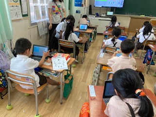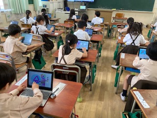 お絵描きをしました。自分でキャラクターを作り、動かしています。子ども達はすぐに覚えて、使っています。