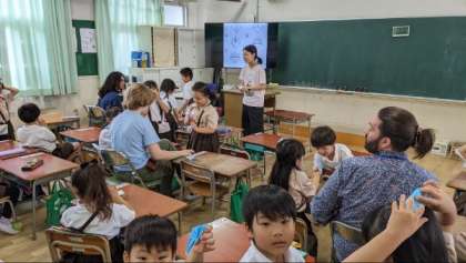 自己紹介や英語のチャンツ、折り紙などを一緒に楽しみました。