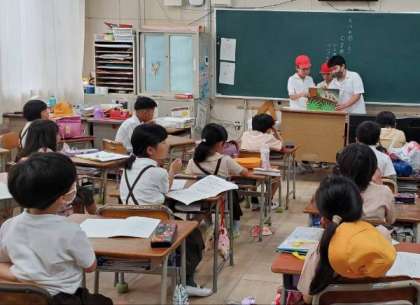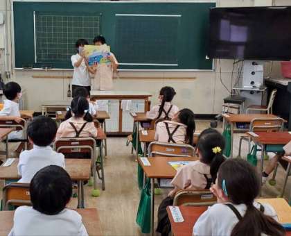 それぞれのグループで、選んだ紙芝居を1年生と2年生に読み聞かせしました。