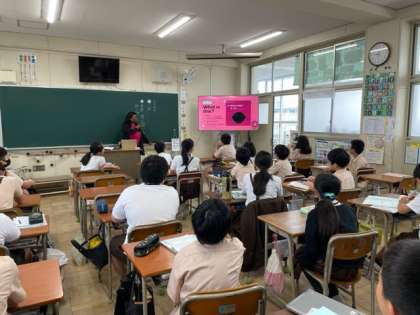 ラッキーナンバーに当たった子は、みんなの前でスピーチをしました。