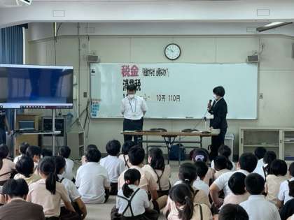 学習の始め、「税金を払いたいですか?」という質問に、子どもたちは「できれば払いたくない」と答えていました。