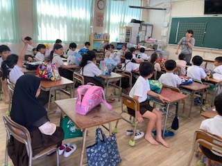 月曜日から始まるプール水泳学習に向けての話を聞きました。着替える時、気をつけることについてしっかり書きました。