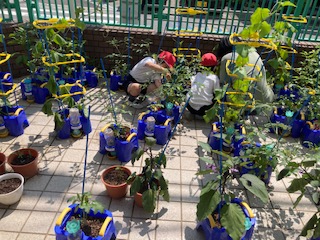ミニトマトやナスの実ができました。収穫して持って帰りました。味はどうだったかな?