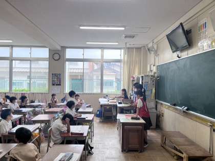 1時間目は、たてわり班で集合して、大宮子どもまつりについての話し合いをしました。ゲームの内容も決まり、準備物やルール、役割などの確認をして進めています。子どもまつりは、29日が本番です。