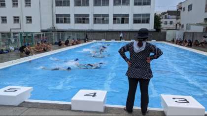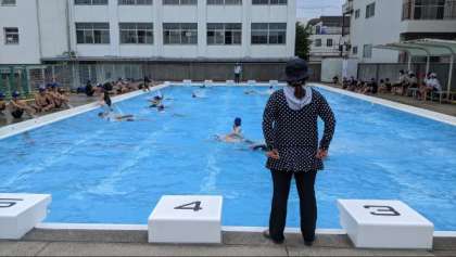 クロールで少しでも遠くまで泳げるように練習をしました。