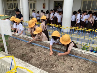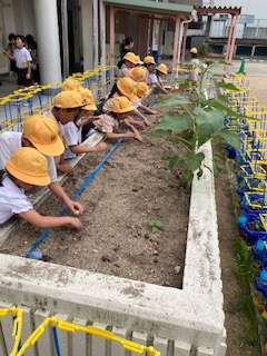 マリーゴールドや綿、ひまわりなどの種を蒔きました。