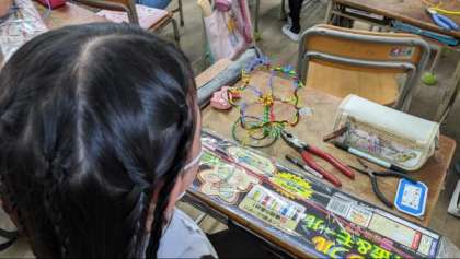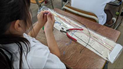 ペンチや手を使って、針金やモールを変形させ、立体作品を仕上げていました。