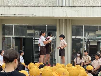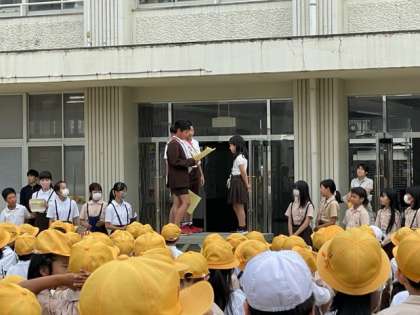 先週の給食週間で取り組んだ「ピッカピカ賞」の表彰と、代表委員会から、今週木曜日に行われる「大宮子どもまつり」の説明がありました。