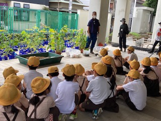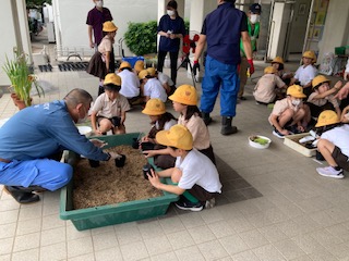 今日は、旭区役所、鶴見公園事務所、地域のグリーンコーディネーターさん達に教えていただき、クラスごとに株分けをしました。